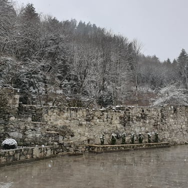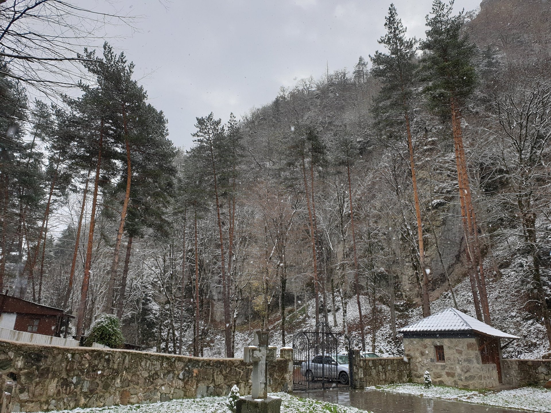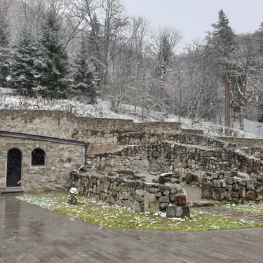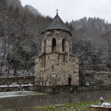 The walk toward the monastery is almost sacred in itself. Towering pine trees line the path, their scent sharp and grounding, and with every step upward the sounds of the town dissolve into silence. The monastery was abandoned for more than two hundred years after violent invasions in the 18th century, its grounds slowly reclaimed by nature, until monastic life returned in 2003. Nearby stones along the stream, tinged with a faint reddish hue, quietly recall the tragic events of the 1550s, when monks lost their lives during Persian raids. Standing there, you do not feel sadness as much as humility, an awareness that faith, nature, and history coexist here without explanation.