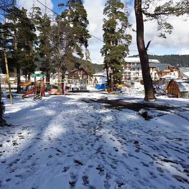 The ski resort spreads across several zones, Didveli, Kokhta, and Mitarbi, each offering its own personality. Lift systems carry skiers up toward elevations of nearly 2,700 meters, opening access to roughly 26–30 kilometers of groomed trails. Beginners find confidence on wide, forgiving slopes, intermediates enjoy long, flowing runs through forest corridors, and experienced skiers test themselves on steeper descents from the Kokhta peaks. Here, skiing and walking exist side by side: one moment carving through snow, the next strolling quietly through pine woods as snowflakes settle softly around you.