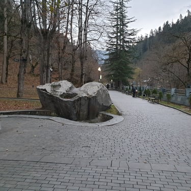At the heart of the town lies Borjomi Central Park, a place that feels suspended between reality and a fairy tale. The park opens like a green corridor of life, trees arching above stone paths, the sound of the river never far away, and the scent of pine and mineral water floating effortlessly in the air. Walking here feels instinctively slower, as if the park itself asks you to match its rhythm.