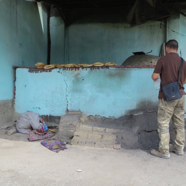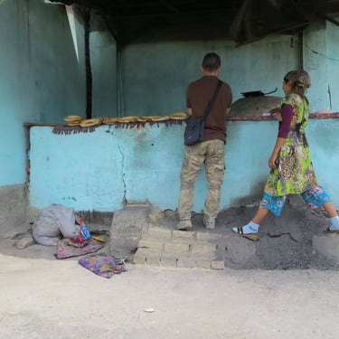 The Lepyoshka Shack by the Kugart River became our daily sacrament. At first glance, it seemed abandoned - a lopsided hut with smoke curling through its cracked clay roof. But step inside, and time folded in on itself: bakers with hands like topographic maps slapping dough against the walls of a tandoor oven, the fire's glow painting their faces bronze. The bread emerged blistered and singing, its crust crackling under our fingers as we tore into steaming rounds on the riverbank. That first bite - the chew of wheat grown in mountain soil, the whisper of woodsmoke, the way the honey we smuggled from the bazaar melted into its pores - ruined me for all other bread.