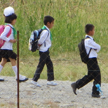 The Schoolchildren transformed the dusty streets each afternoon into a living diorama of resilience. Little girls in starched white pinafores, their hair braided with ribbons bright as prayer flags. Boys in navy Soviet-style uniforms, their oversized collars framing faces already wise beyond years. They marched past donkey carts and smartphone repair stalls with an oblivious dignity that made my heart ache. I once saw a teacher gently adjust a first-grader's red pioneer scarf outside a crumbling Soviet-era school, her fingers lingering on the fabric like it held the weight of history. In their laughter echoing through the bazaar, I heard the stubborn pulse of a culture refusing to disappear.