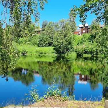 I mean it is contemporary and youthful but at the same time still manages to retain a traditional Swedish feeling if that makes sense. The town itself is enveloped by such a picturesque environment, clear blue lakes, winding rivers, thick green trees everywhere. It is really an ideal place for every outdoor activity Enthusiasts be it hiking, fishing, kayaking, etc. And I also heard that the Skelleftea river has salmon in it! It is said that fishermen travel from far and wide just to catch some fish.