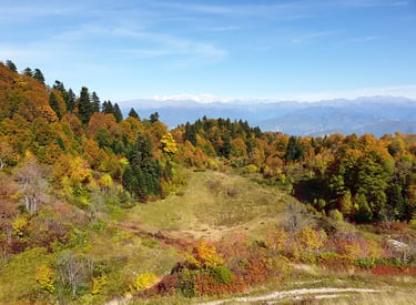 A towering massif rising above western Georgia like a mythical fortress, Khvamli is more than a mountain—it is an experience. From golden autumn forests and an 800-year-old hilltop church to a summit view that stretches nearly 30 kilometers across the Caucasus, this journey is about silence, scale, and the rare feeling of standing at the edge of infinity.
