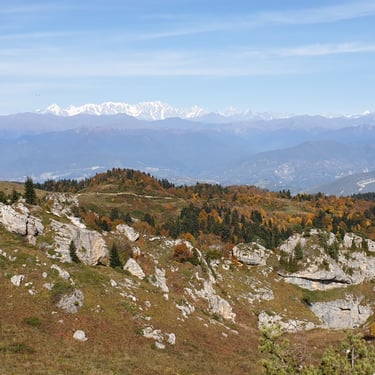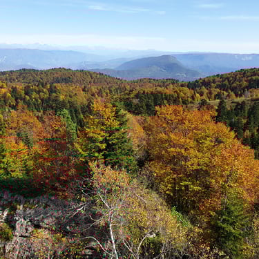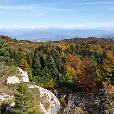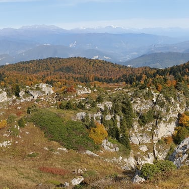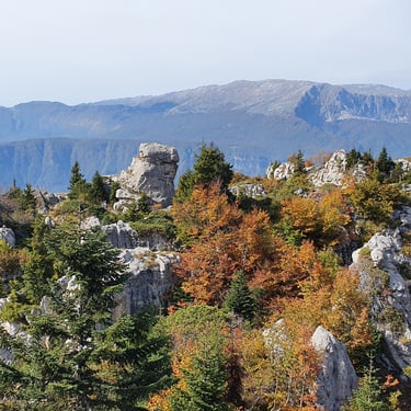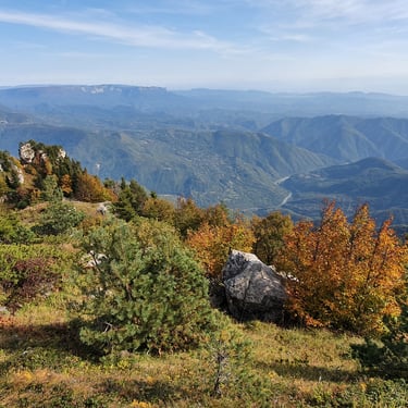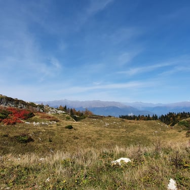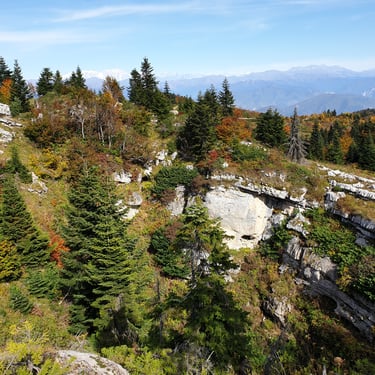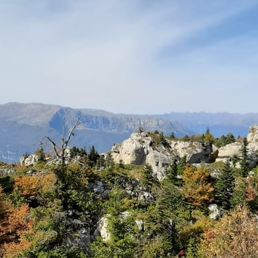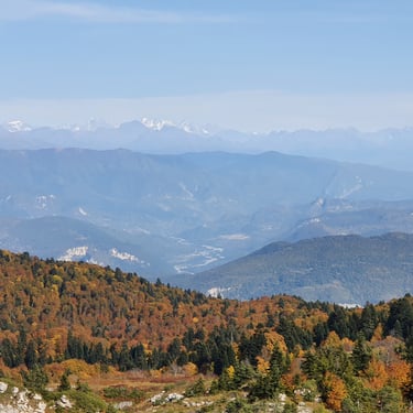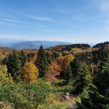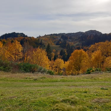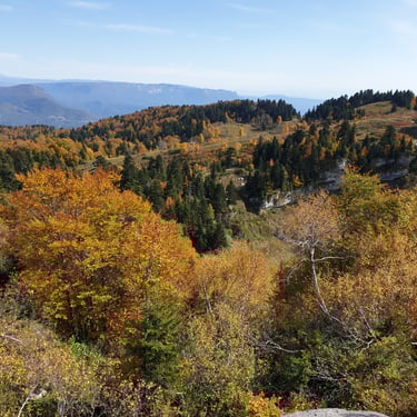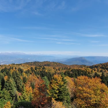 And we could not have chosen a better moment. Mid-October. A clear, sunlit day. Autumn had arrived gently but decisively. The forest greeted us in shades of amber, crimson, and deep gold. The air was crisp yet soft, infused with that unmistakable scent of fallen leaves and distant woodlands preparing for winter. Even at the parking area, before we had taken a single step, we were already enchanted by the vast panorama unfolding around us.