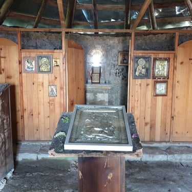Our first real pause came after the final steep push up to the church. It stands on the western side of the massif, not on the absolute summit, which lies another 1.5 kilometers to the south, but perfectly positioned to overlook the endless Caucasian expanse. The sense of peace there is beyond articulation. Silence, yet not empty silence, rather a fullness of stillness. A gentle wind brushing across the stone walls. The vastness of nature stretching in every direction. It felt like standing at the edge of something sacred. A small piece of heaven resting quietly on earth.