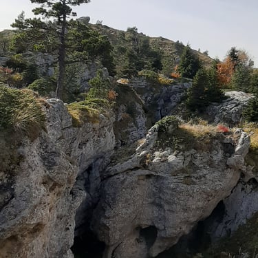 The path then led us along the rim of a vast hollow, so deep that its bottom was invisible. We moved cautiously along its edge, ascending gradually toward the summit. The landscape felt raw and dramatic, sculpted by ancient tectonic forces that shaped the greater Caucasus range over millennia.