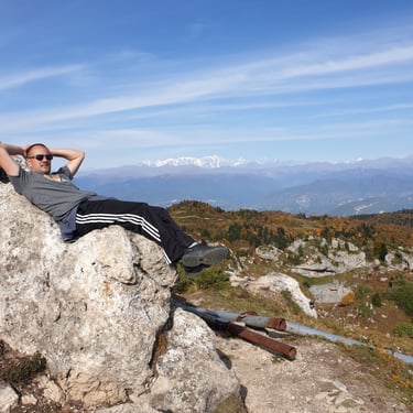 How do you describe the feeling of lying down on a stone at the very top of a mountain, staring into an ocean of ridges fading into soft blue layers? Of feeling the earth solid beneath you and the sky impossibly vast above you? Time seemed irrelevant. The world below felt distant, almost unreal.