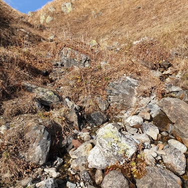 Armed with topographic maps on our phones, we chose to climb the right slope, convinced that all we needed was a bit more elevation. We were already around 2,500 meters above sea level. The ascent was brutal—steep, slippery, dangerous. We clung to tall grass for balance, fighting gravity and exhaustion, knowing that one wrong step could send us tumbling down the mountainside.