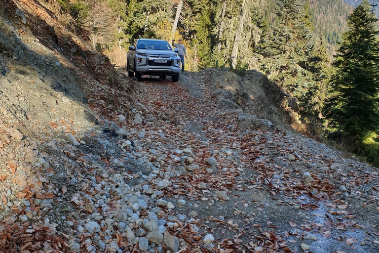 Our path was not without resistance. We encountered massive piles of rocks, debris from landslides that had swallowed the road whole. There was no choice but to stop, get out, and move the stones by hand. No shortcuts. Just effort, teamwork, and determination. The mountain does not negotiate, you earn every meter.